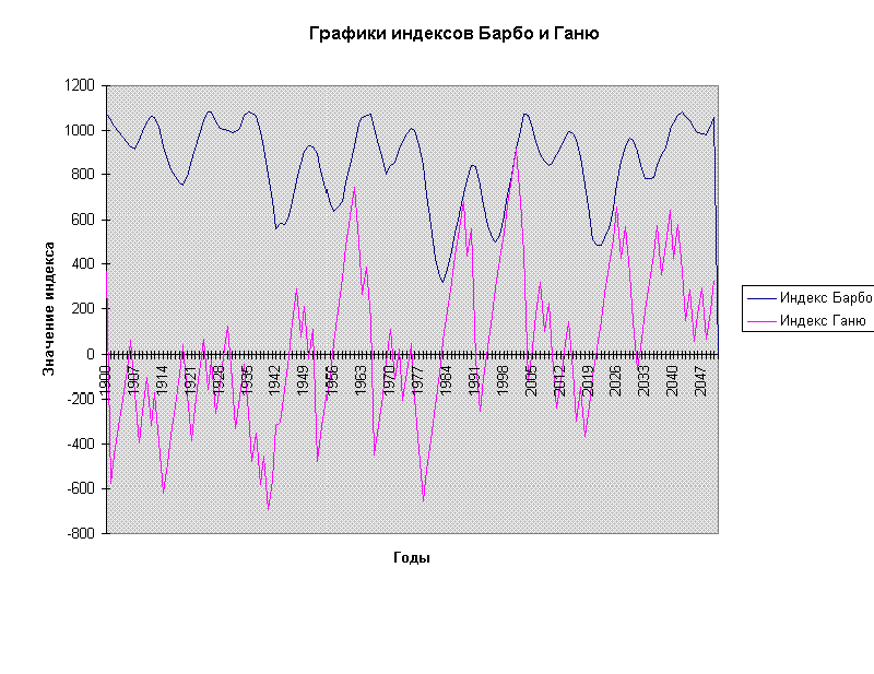 И еще один важный момент: в нашем веке понижение индекса Барбо всегда сопровождалось падением индекса Ганю в область отрицательных значений. А при понижении, которое начнется примерно в 2007 году, индекс Ганю останется положительным. Значит, темпы движения снижаются, но направленность в сторону эволюции сохраняется. А потому, дорогие читатели, давайте смотреть на будущее с оптимизмом и своей жизнью помогать Вселенной вести нас к свету.